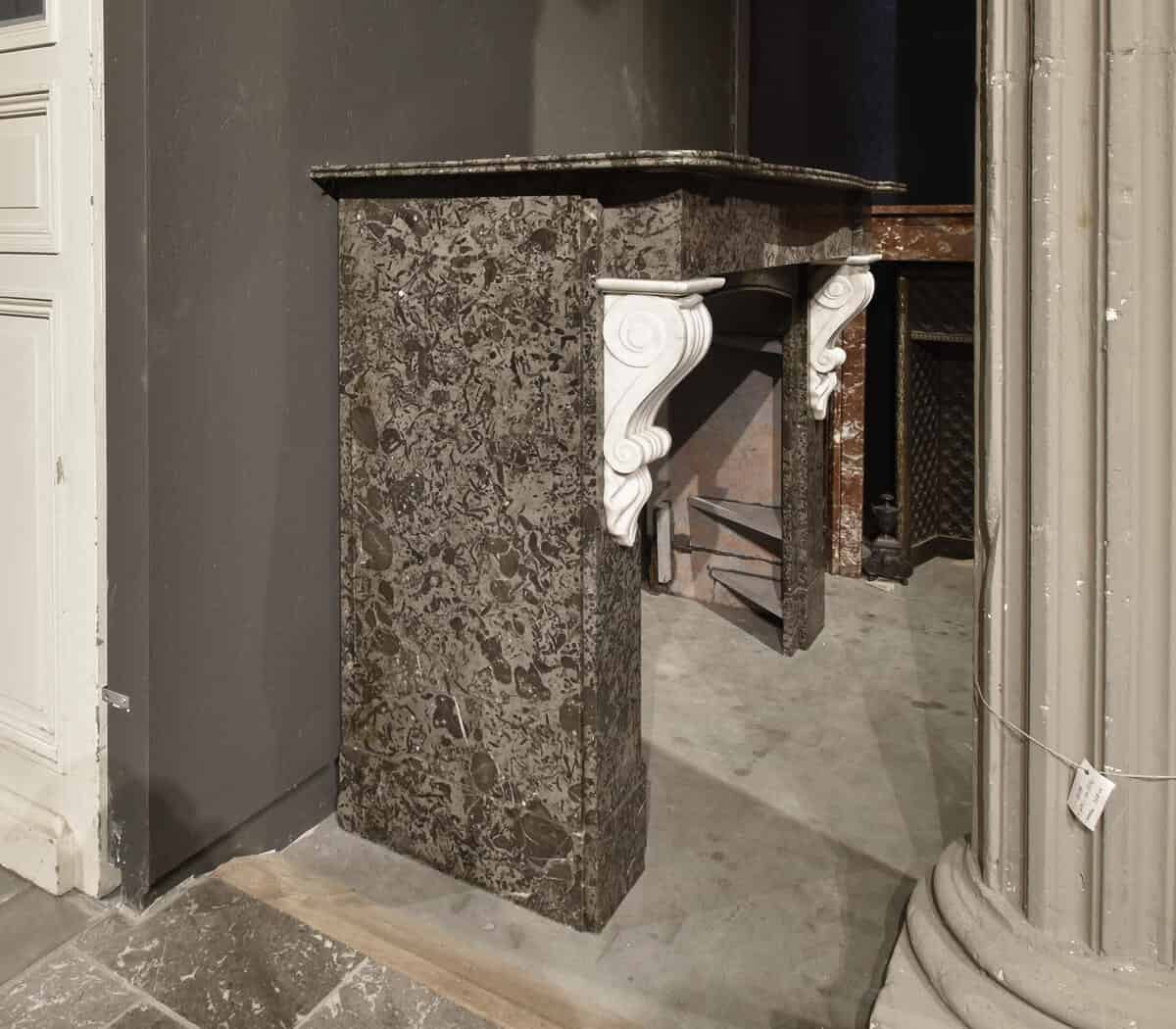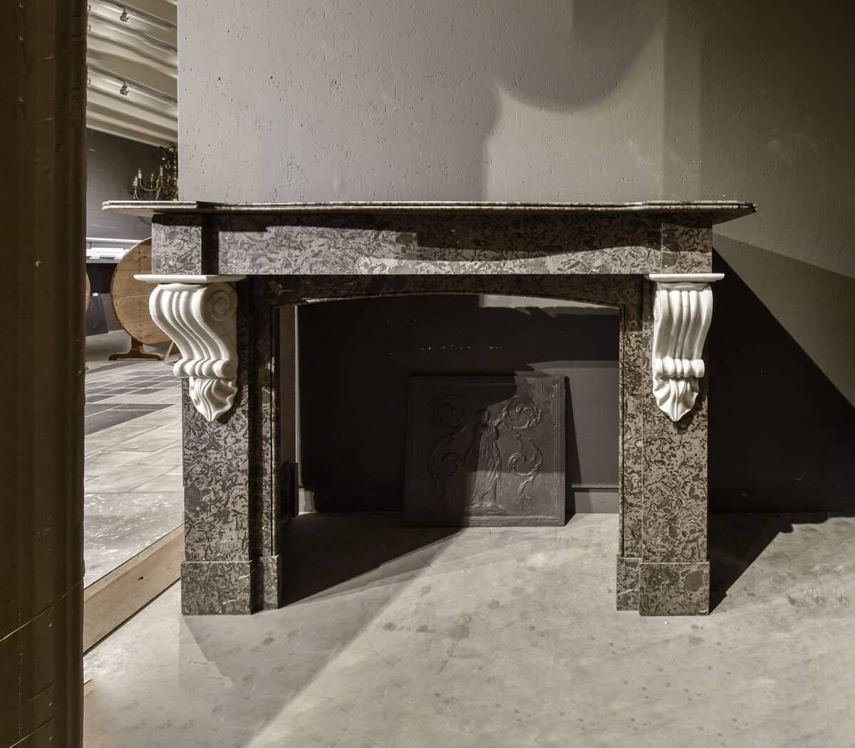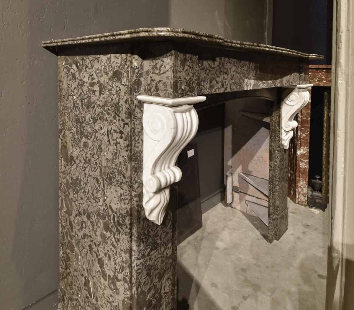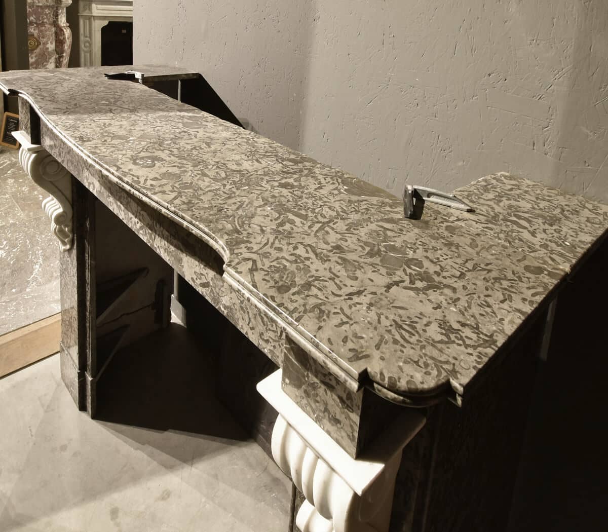 Deze antieke marmeren schouw is volledig schoongemaakt en voor gemonteerd in eigen atelier door ervaren restaurateurs. De meeste antiek marmeren schouwen bestaan namelijk uit diverse losse onderdelen. Deze worden opgebouwd tot 2 complete staanders, het blad en een paar losse delen, zodat het plaatsen van de schouw door de aannemer of schouwbouwer correct en vooral veel sneller kan gebeuren.