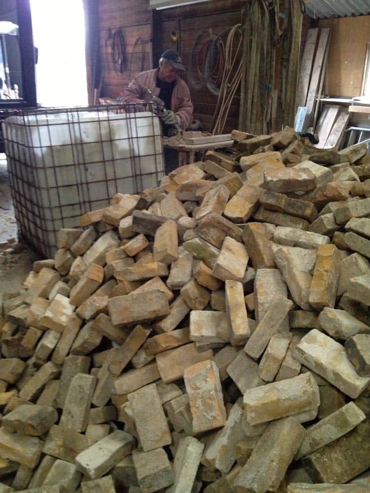 Grote partijen metselstenen en klinkers binnen. Deze worden momenteel gebikt en schoongemaakt. IJsselstenen, IJsselklinkers, kleine waaltjes, pastorie stenen, paepstenen, klampstenen, Beerse stenen, kloostermoppen, Waalstenen, Rijnstenen, Vechtstenen, grijze klompen, paarse klompen zijn een aantal benamingen van de stenen die wij doorgaans leverbaar uit voorraad aanbieden.