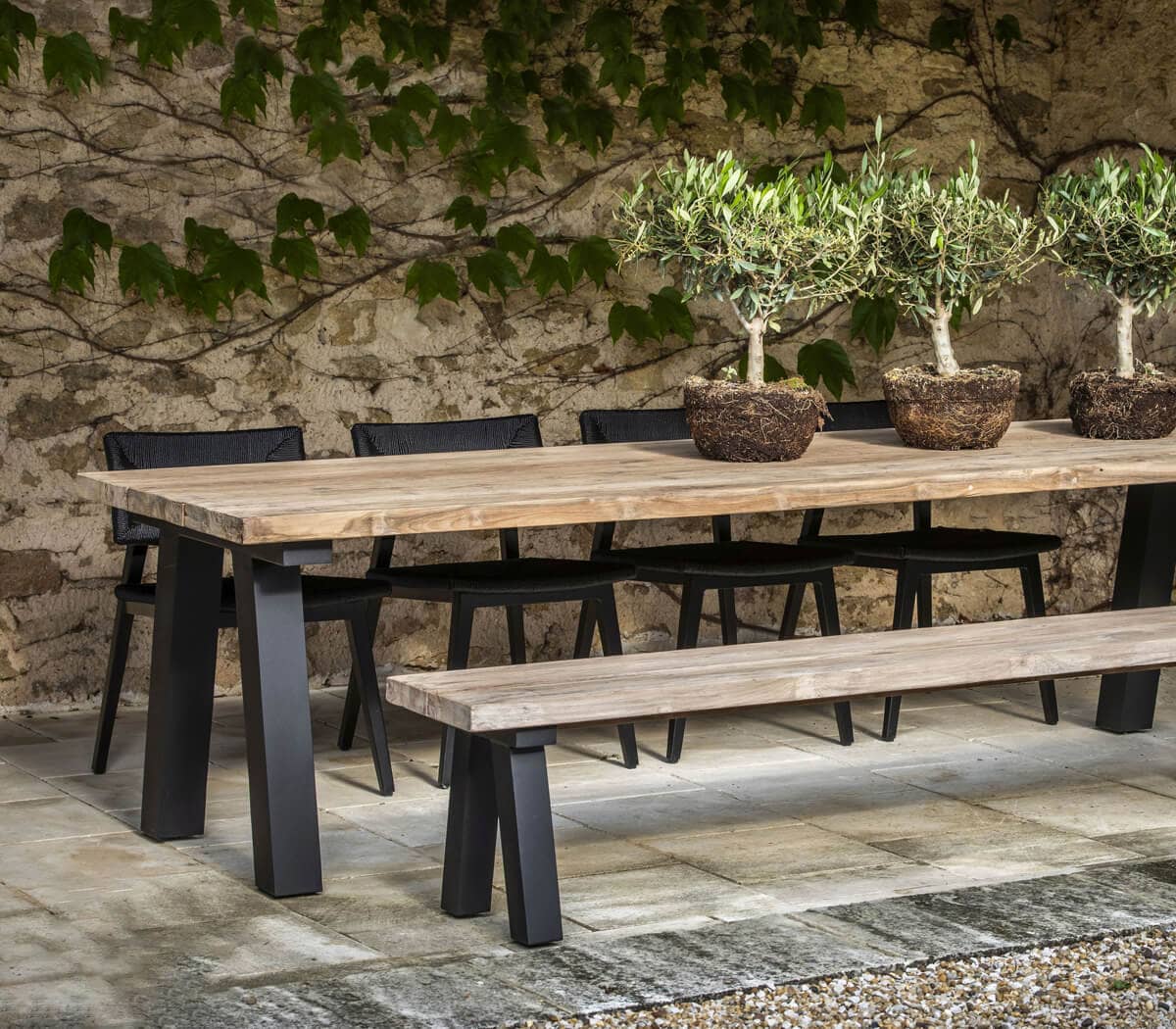 Gemaakt met oog voor detail in karaktervol Reclaimed Teak natuurgrijs & aluminium mat zwart.