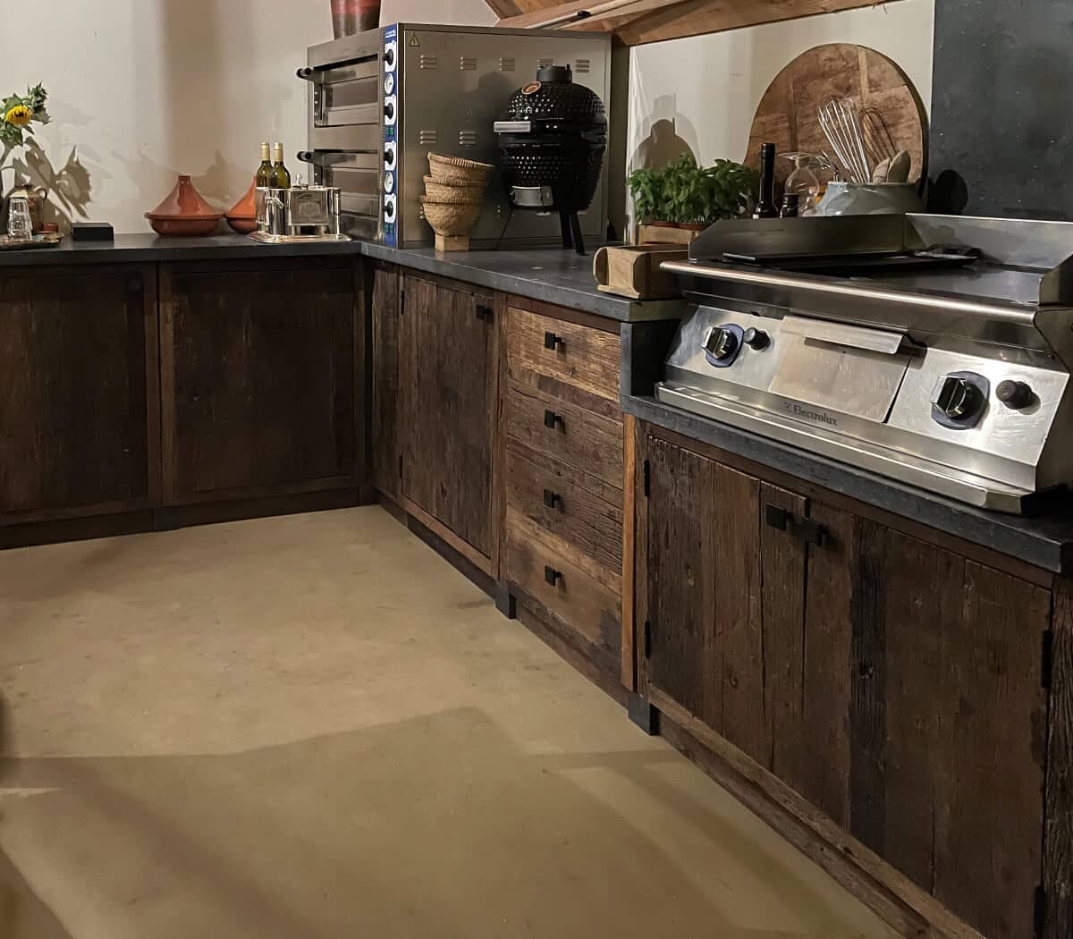 Keukenopstelling met 3 cm. Belgisch hardstenen blad en pompbak