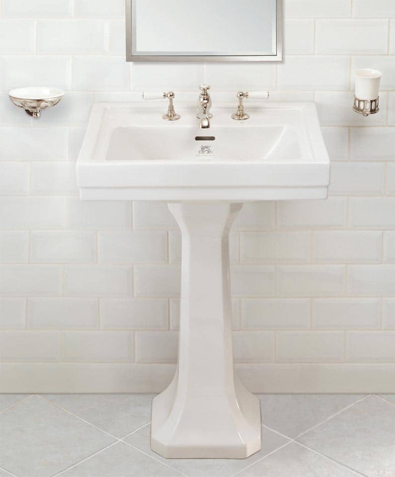 Mooie wastafel van Lefroy Brooks op sokkel. Nostalgisch sanitair gebaseerd op de jaren 1930. Metropole LB 7303 wastafel en Metropole LB 7304 sokkel.