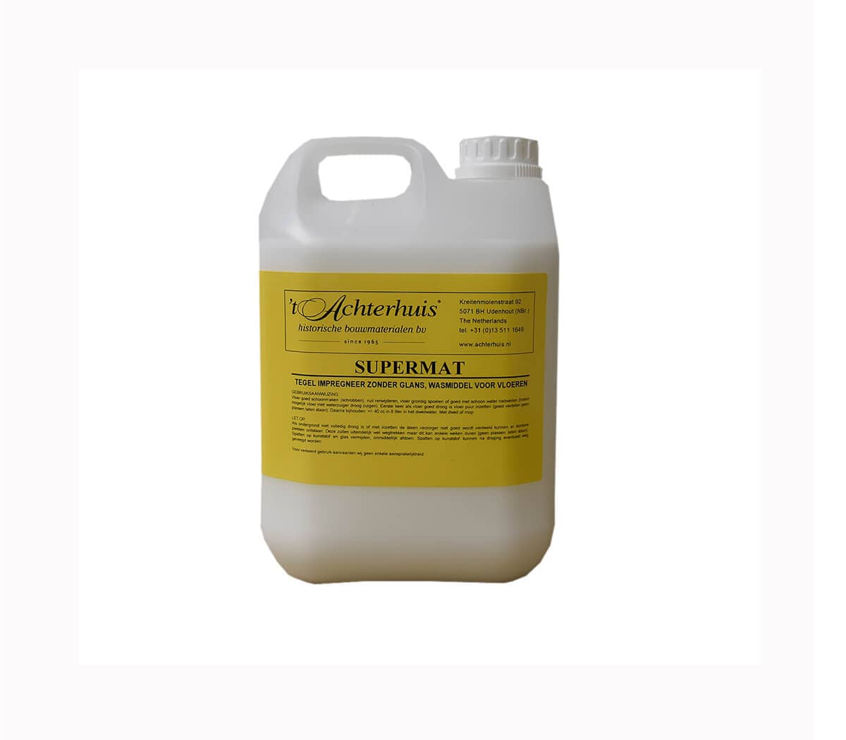 Hieronder kun je Supermat direct bestellen, per 4 kannen van 2,5 ltr in 1 doos. Op te halen in Udenhout of door ons per post op te sturen.