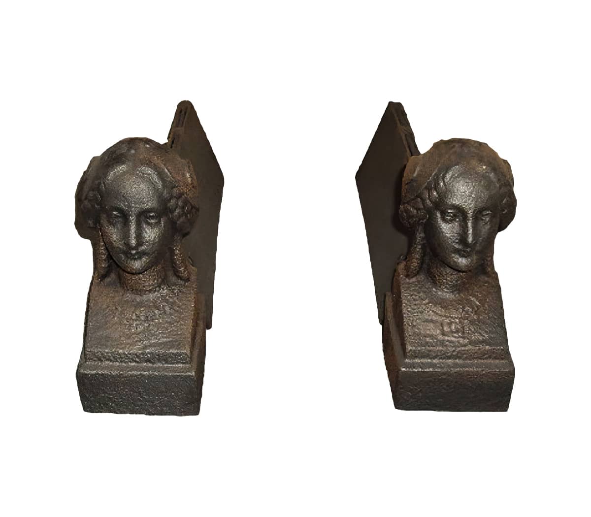 Set antieke ijzeren vuurbokken die dienen om het stookrooster op te leggen. Deze combinatie zorgt voor een betere luchttoevoer en daardoor beter brandend vuur.