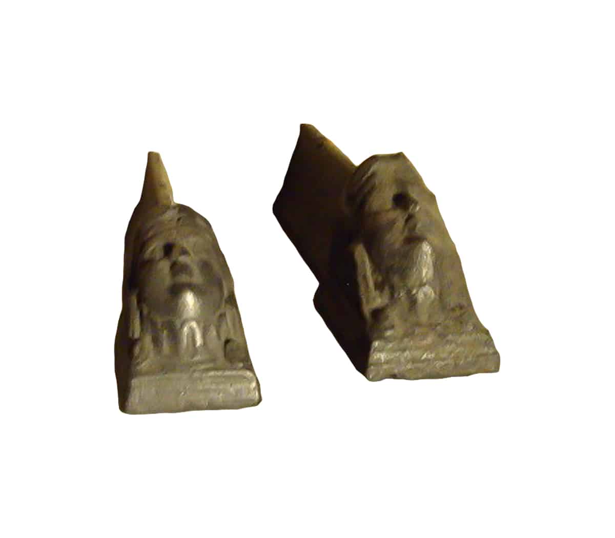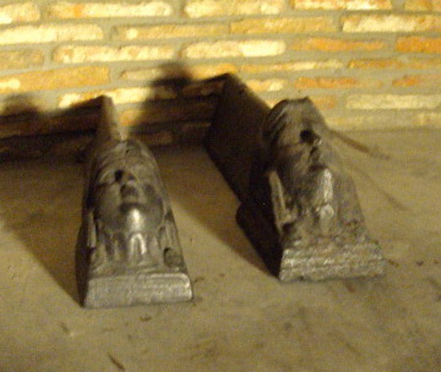 Set antieke gietijzeren vuurbokken die dienen om het stookrooster op te leggen. Deze combinatie zorgt voor een betere luchttoevoer en daardoor beter brandend vuur. Als decoratie ook mooi in een gashaard.