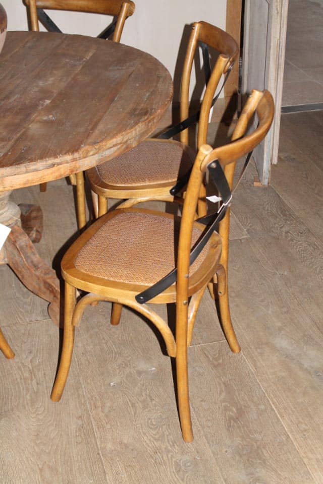 IJzeren beugels op de rug. Meerder kleurstellingen aanwezige, ook diverse andere modellen eetkamerstoelen.